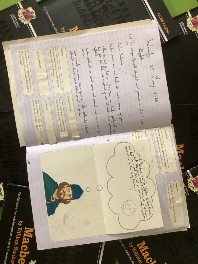 This half term Year 10 have been studying the play ‘Macbeth’. They have learnt about character arcs, themes and plot development. They have also delved into effects on mental health within key characters of the play.