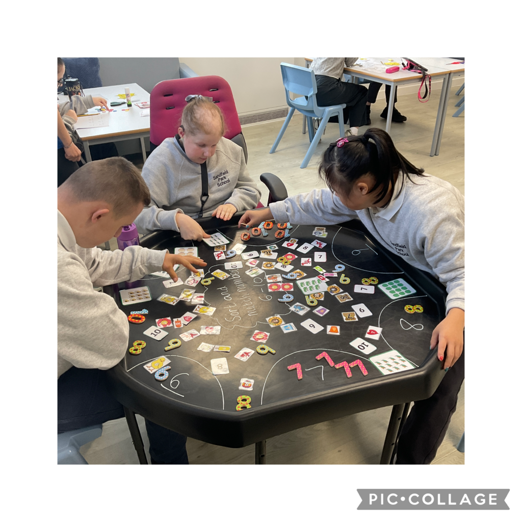 Pupils in SF3 have enjoyed doing number activities in the tuff tray.
