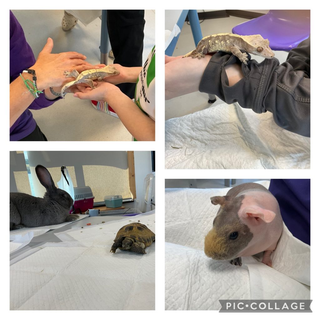 We had an exciting visit from Dennis the giant rabbit, Fred the tortoise, Meg the hairless guinea pig and Ziggy the Gecko.